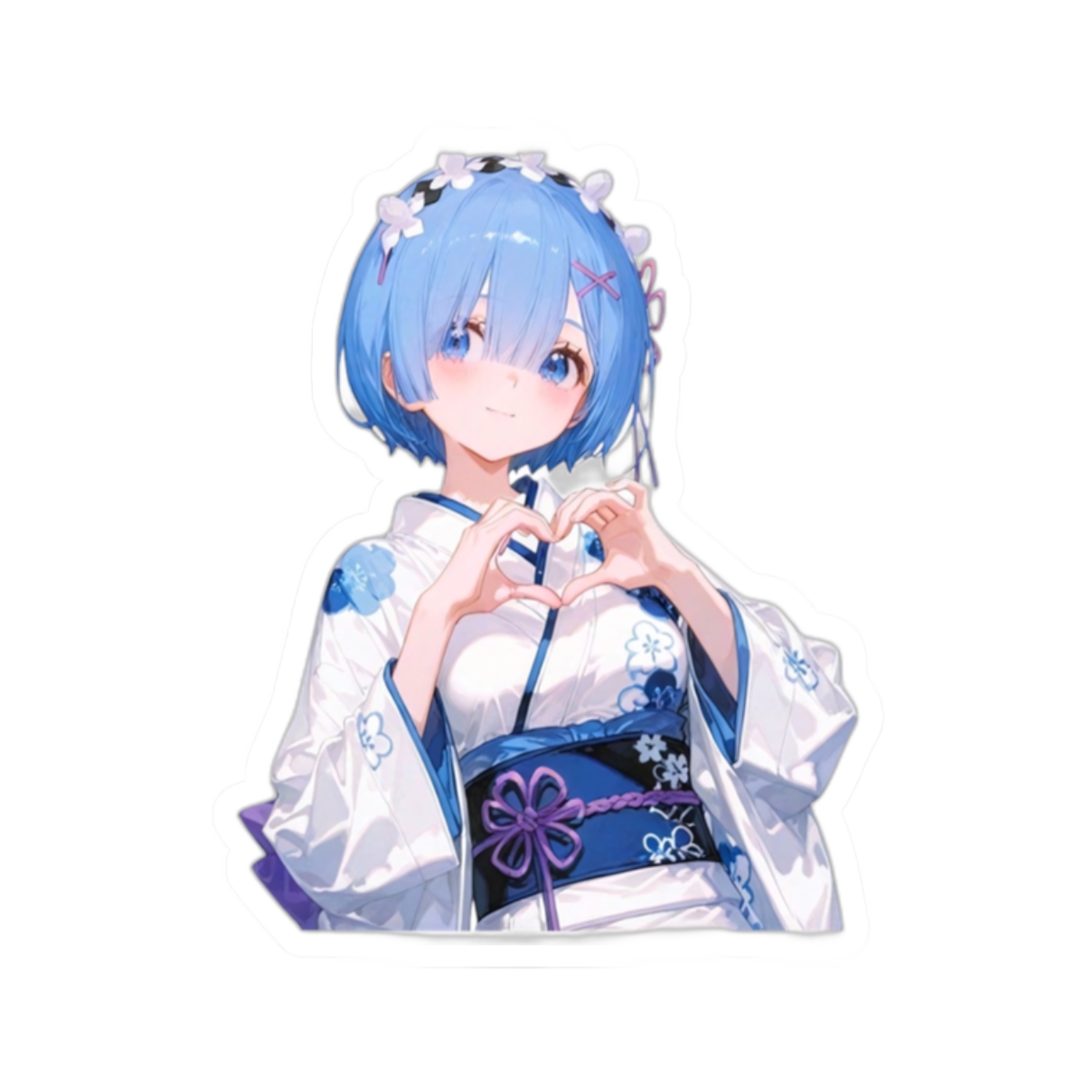 0010 Rem Yukata Heart Sticker – Kiss-Cut Vinyl Sticker